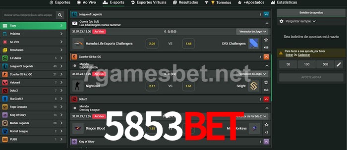 O 5853Bet oferece uma grande seleção de opções de apostas em e-sports com probabilidades competitivas